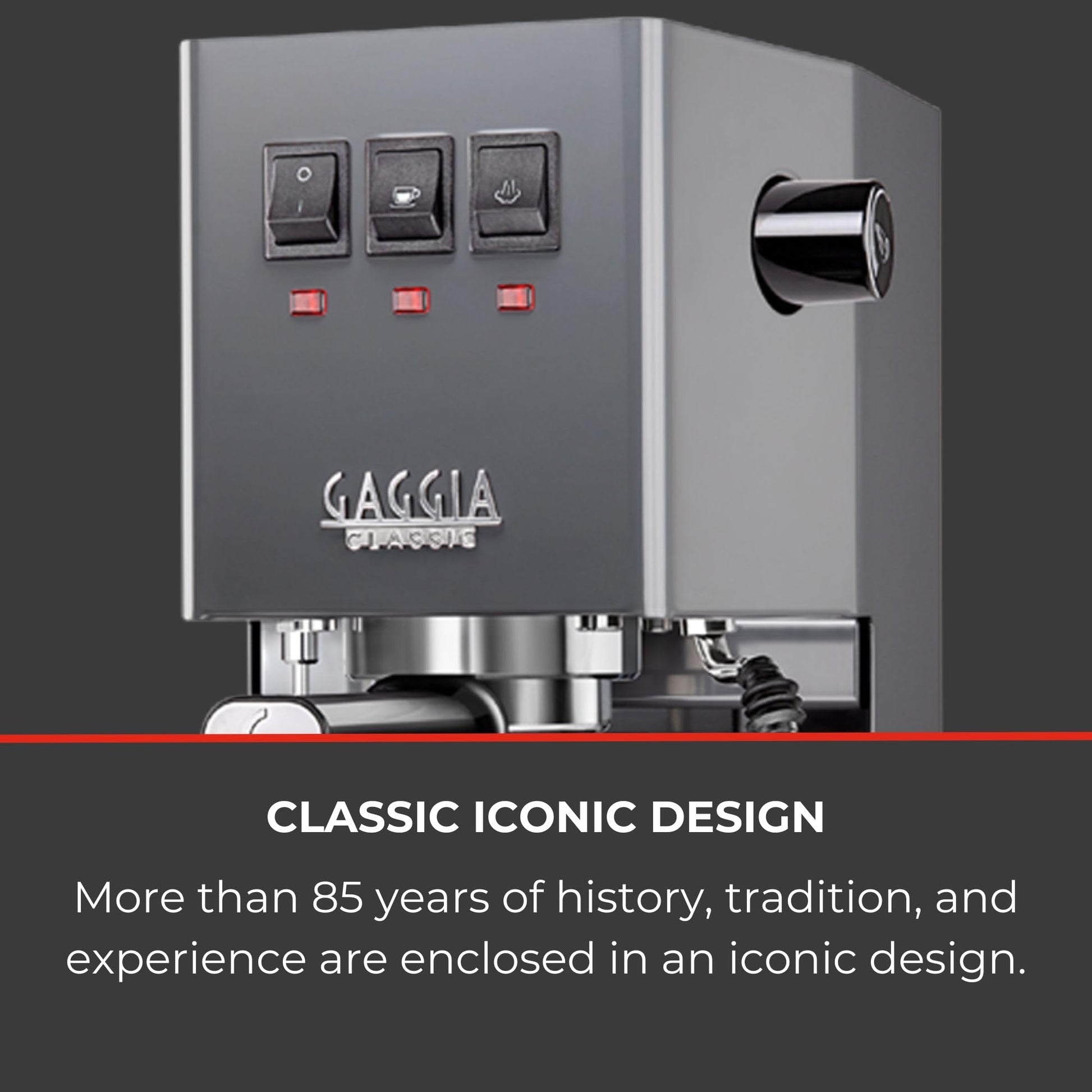 The Gaggia Classic E24 is a made-in-Italy espresso machine that brews prosumer quality shots of espresso extracted at 9 bars of pressure. The commercial steam wand lets you texture milk for a velvety microfoam, perfect for pouring latte art like your favorite cafe. The E24 uses a stainless steel commercial-style 58 mm portafilter and comes with commercial single and double shot filter baskets for pulling expert espresso, as well as a pressurized basket for use with pre-ground Coffee or ESE pods. The updated E24 also features an improved pump mounting for quieter brewing and an uncoated Aluminum boiler that's ready to brew in under 10 minutes from a cold start. With the Gaggia Classic E24, you'll get a versatile machine packed with commercial features, built to last for years.
